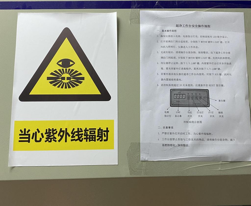 超净工作台缺少警示标识和安全操作规程。