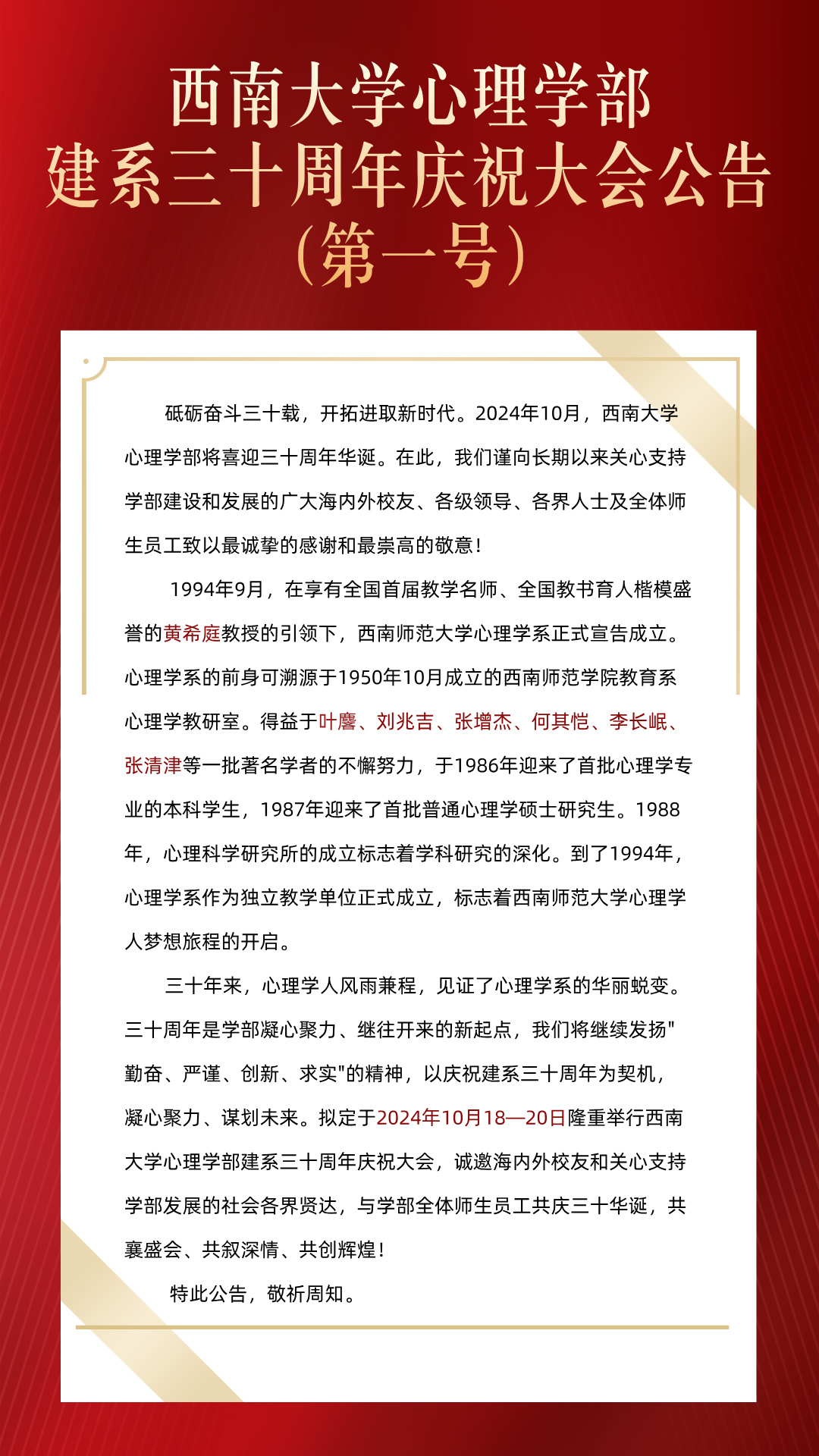 必赢776net必赢776net建系三十周年庆祝大会公告(第一号)